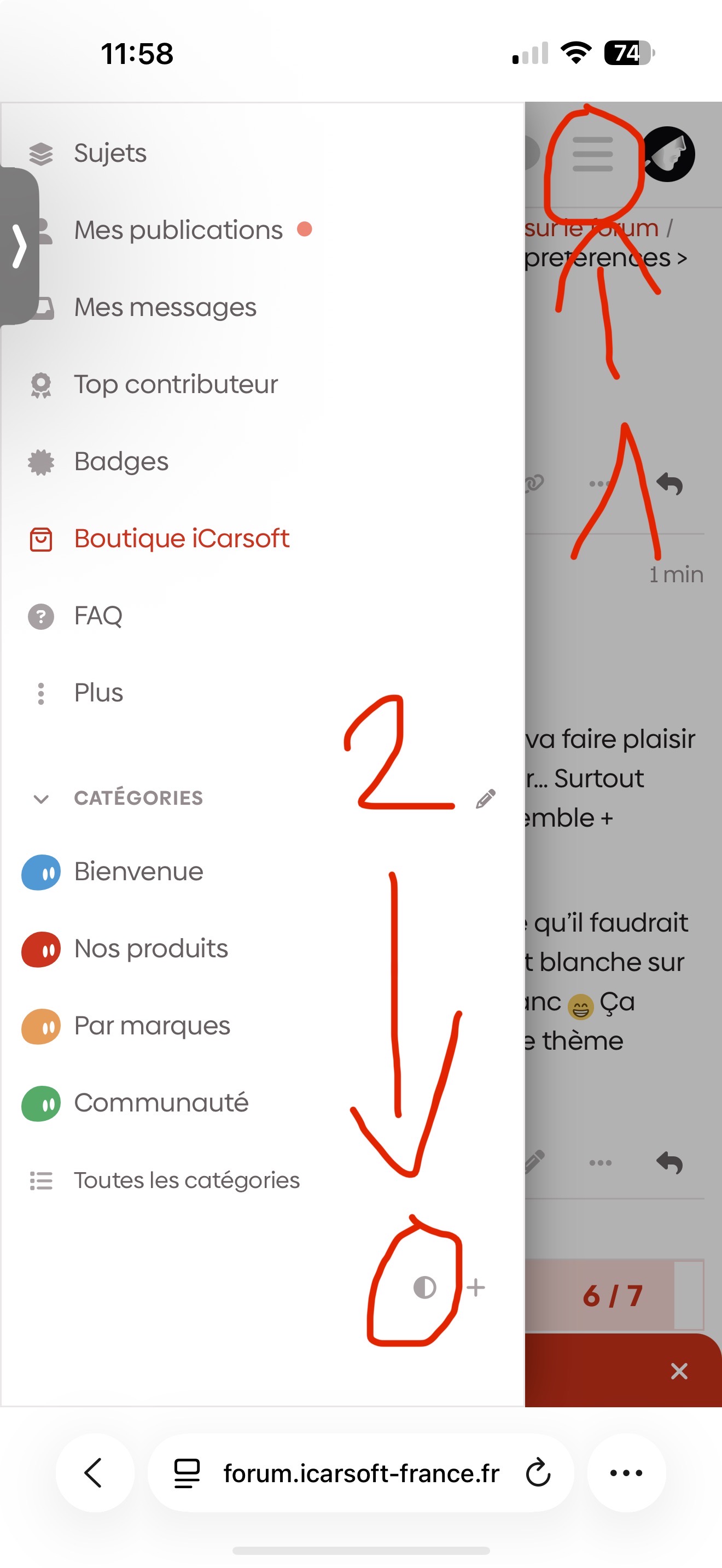 Bonjour,sur mon portable je suis en mode sombre sur le forum.